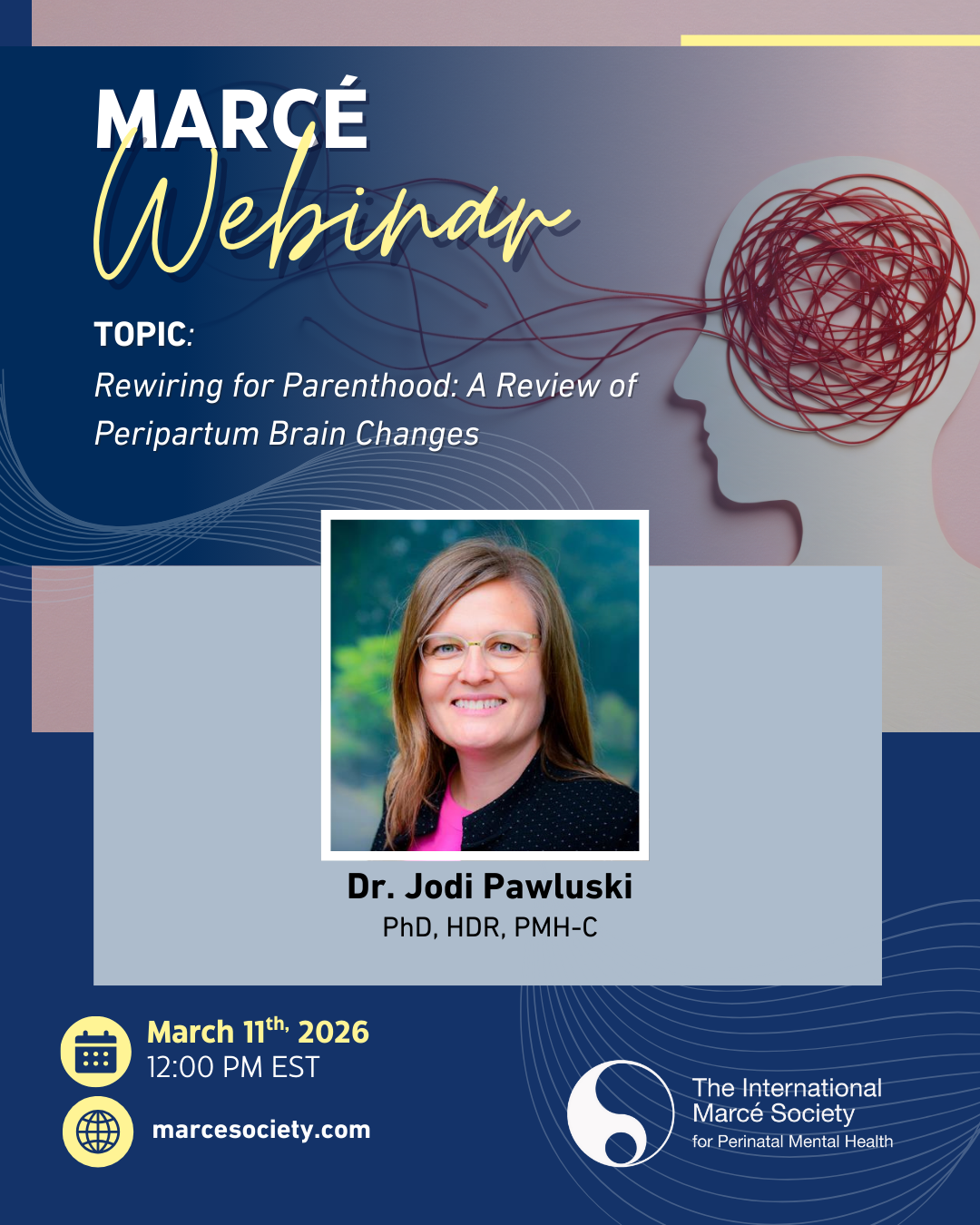 Join us on March 11, at 12:00 PM EST / for a webinar hosted by the International Marcé Society. This session features an expert presentation on Rewiring for Parenthood: A Review of Peripartum Brain Changes. Don’t miss this opportunity to connect, learn, and engage with the global perinatal mental health community.